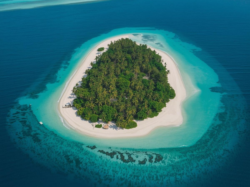 • Palm-lined coastline